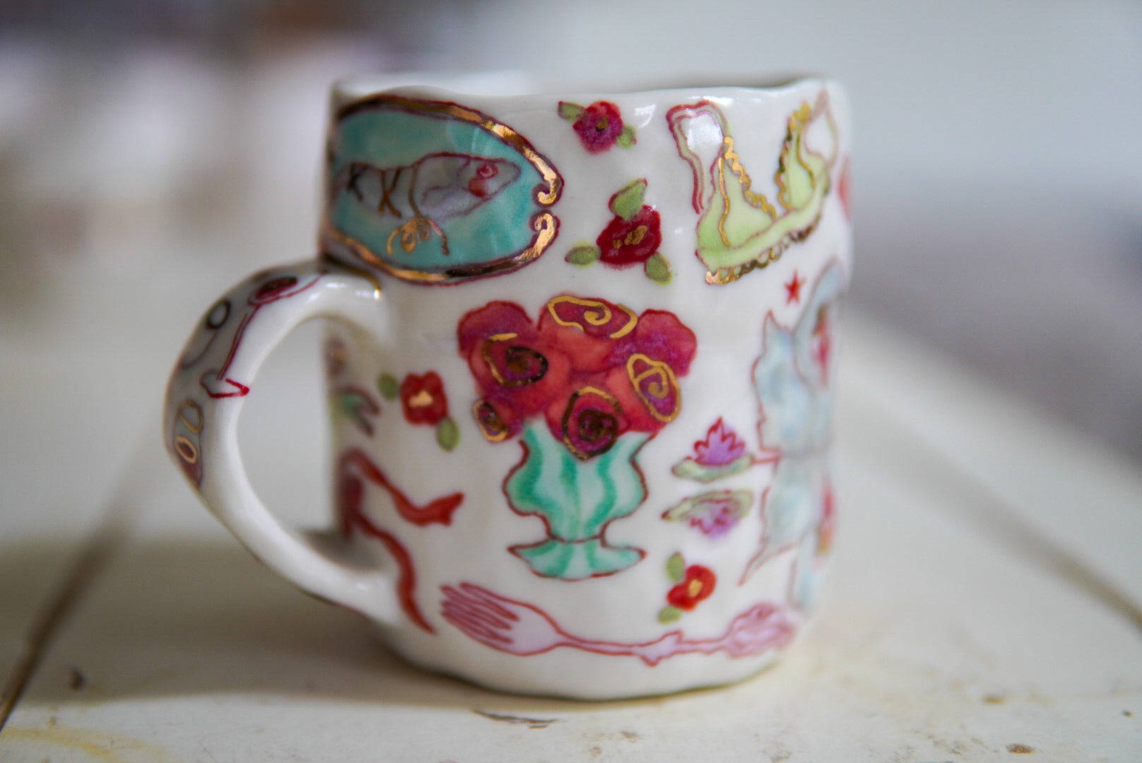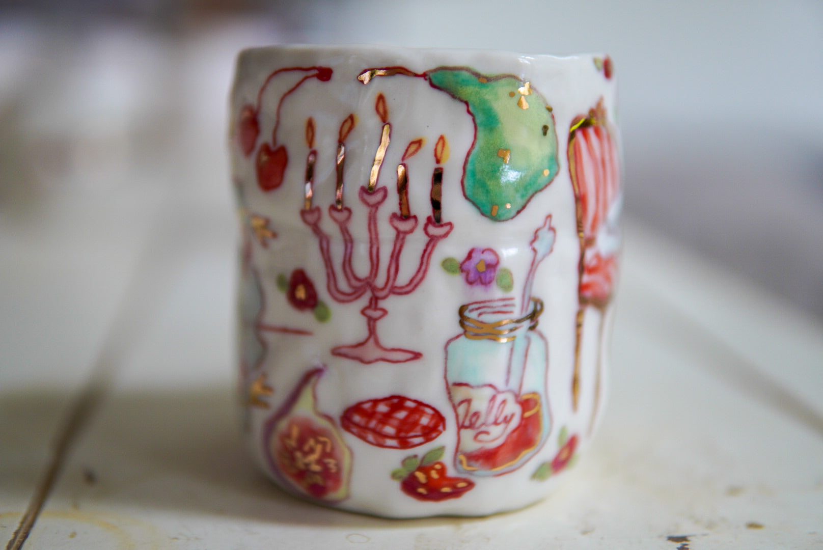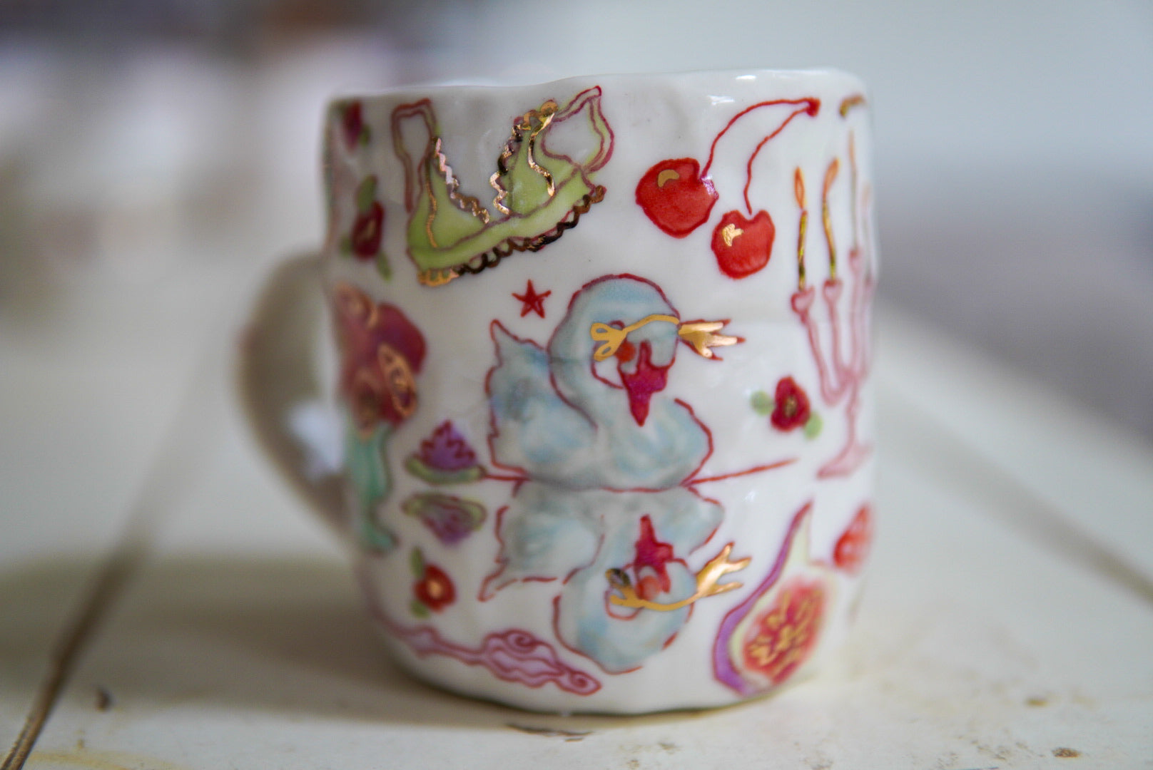 • Porcelain, underglaze, 22k gold luster