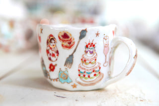 "Kitty & Gummy Cherries" 7 oz Teacup