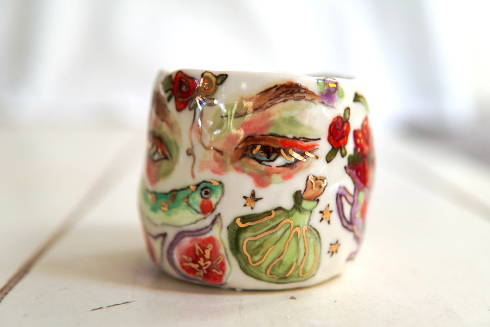 • Porcelain, underglaze, 22k gold luster