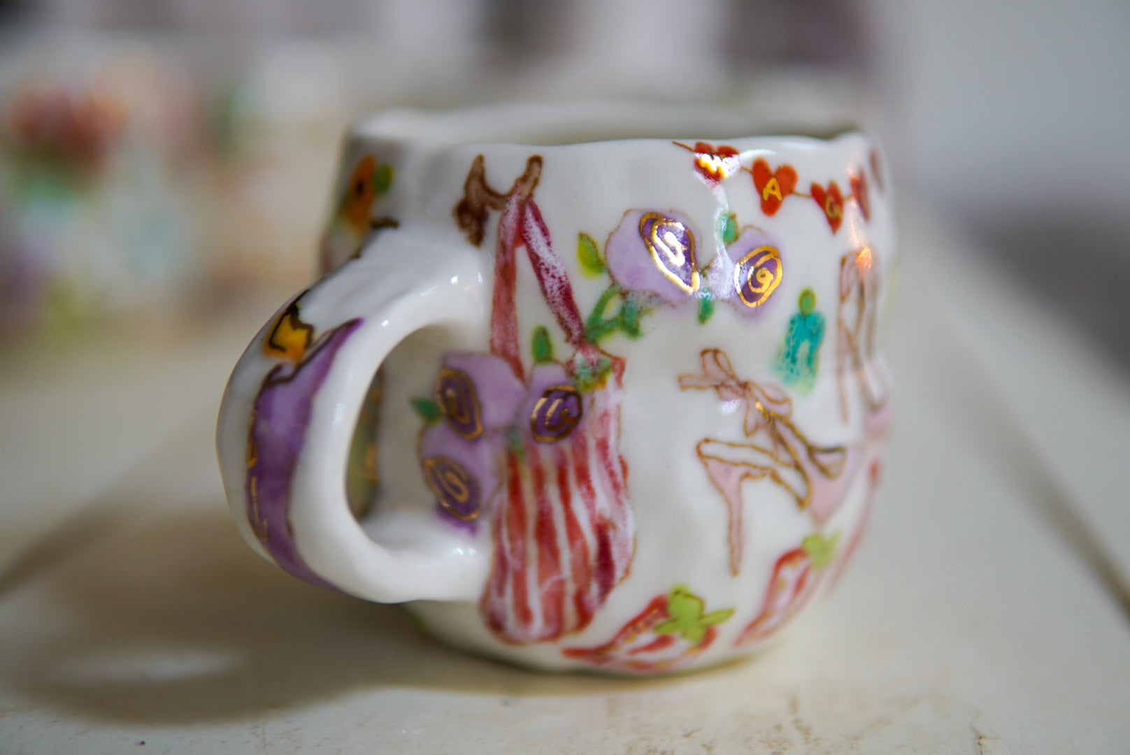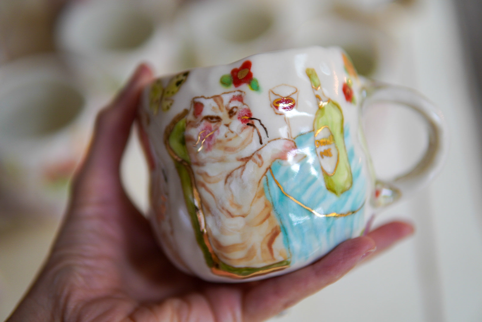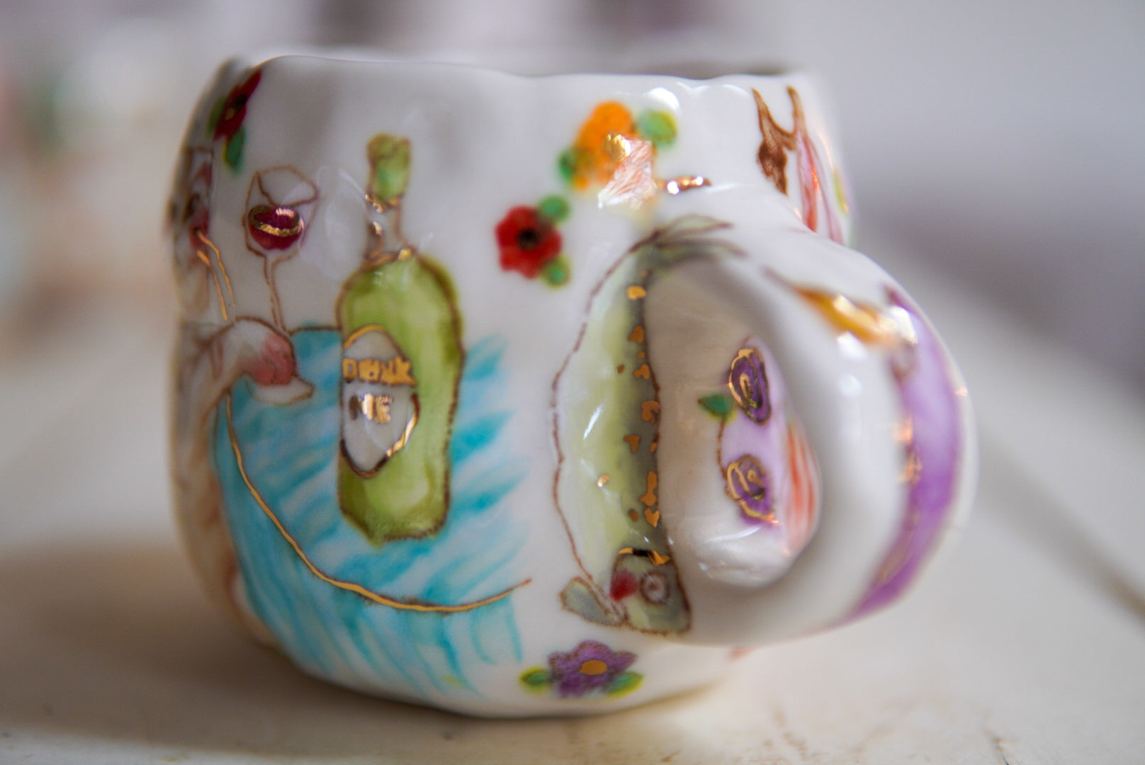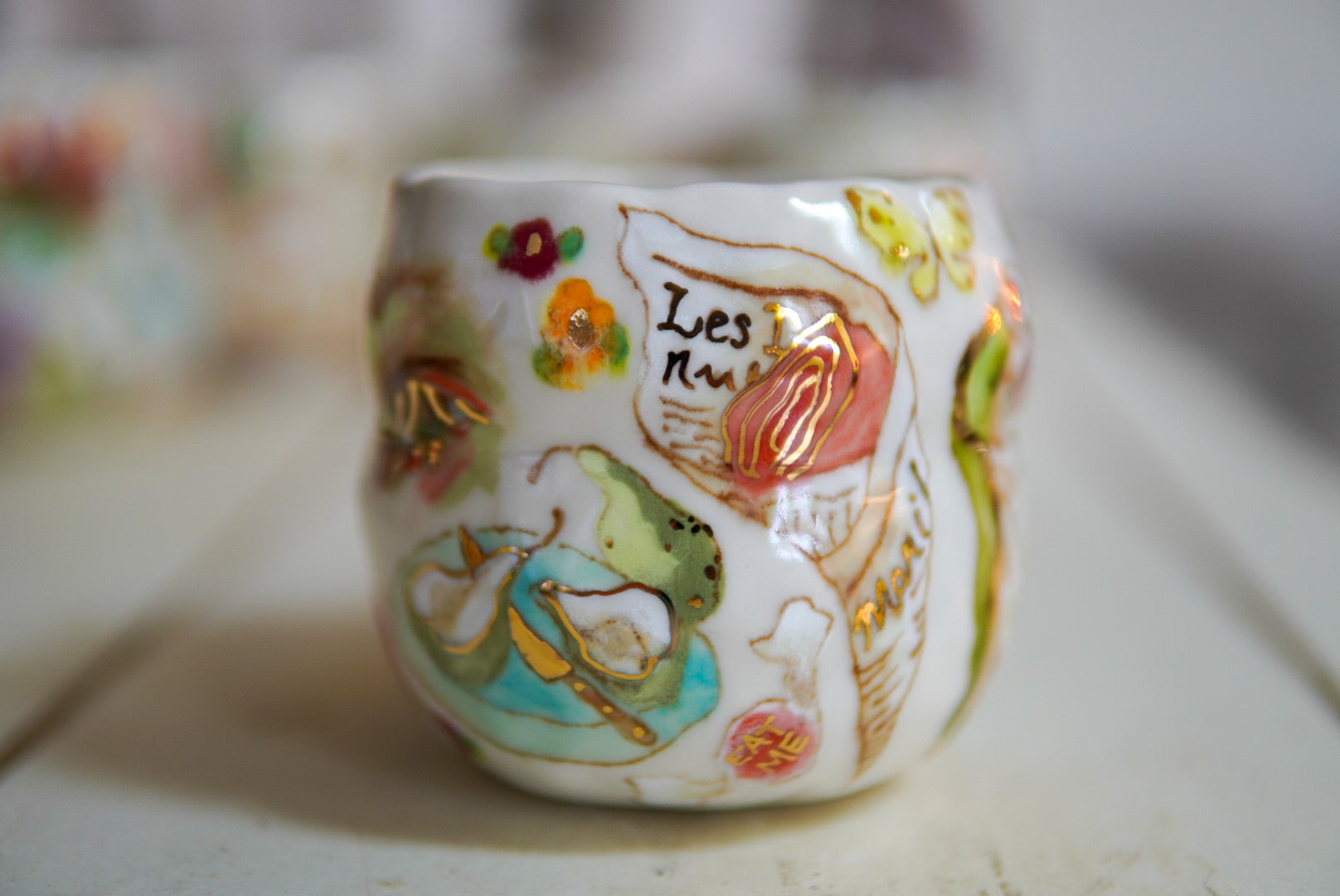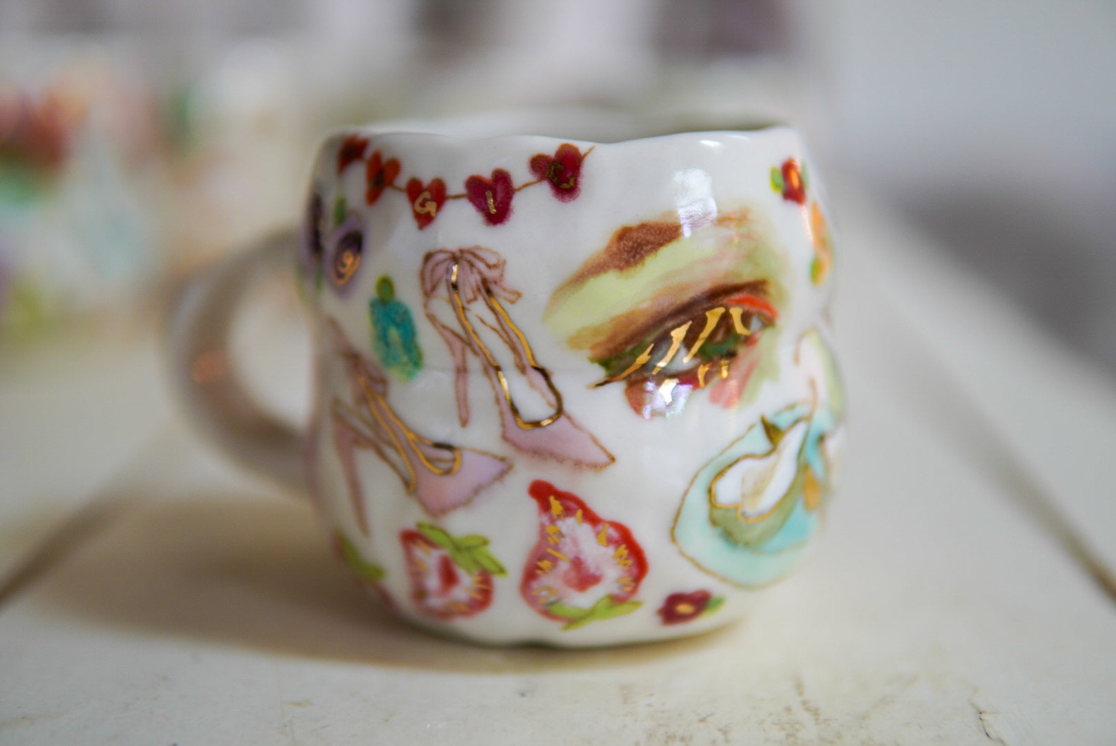 • Porcelain, underglaze, 22k gold luster