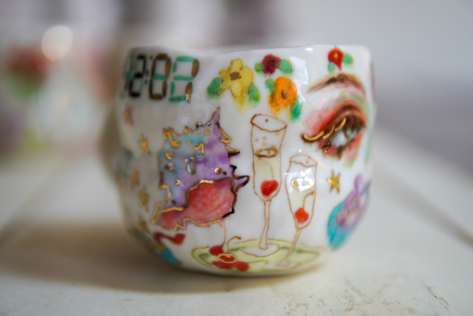 • Porcelain, underglaze, 22k gold luster