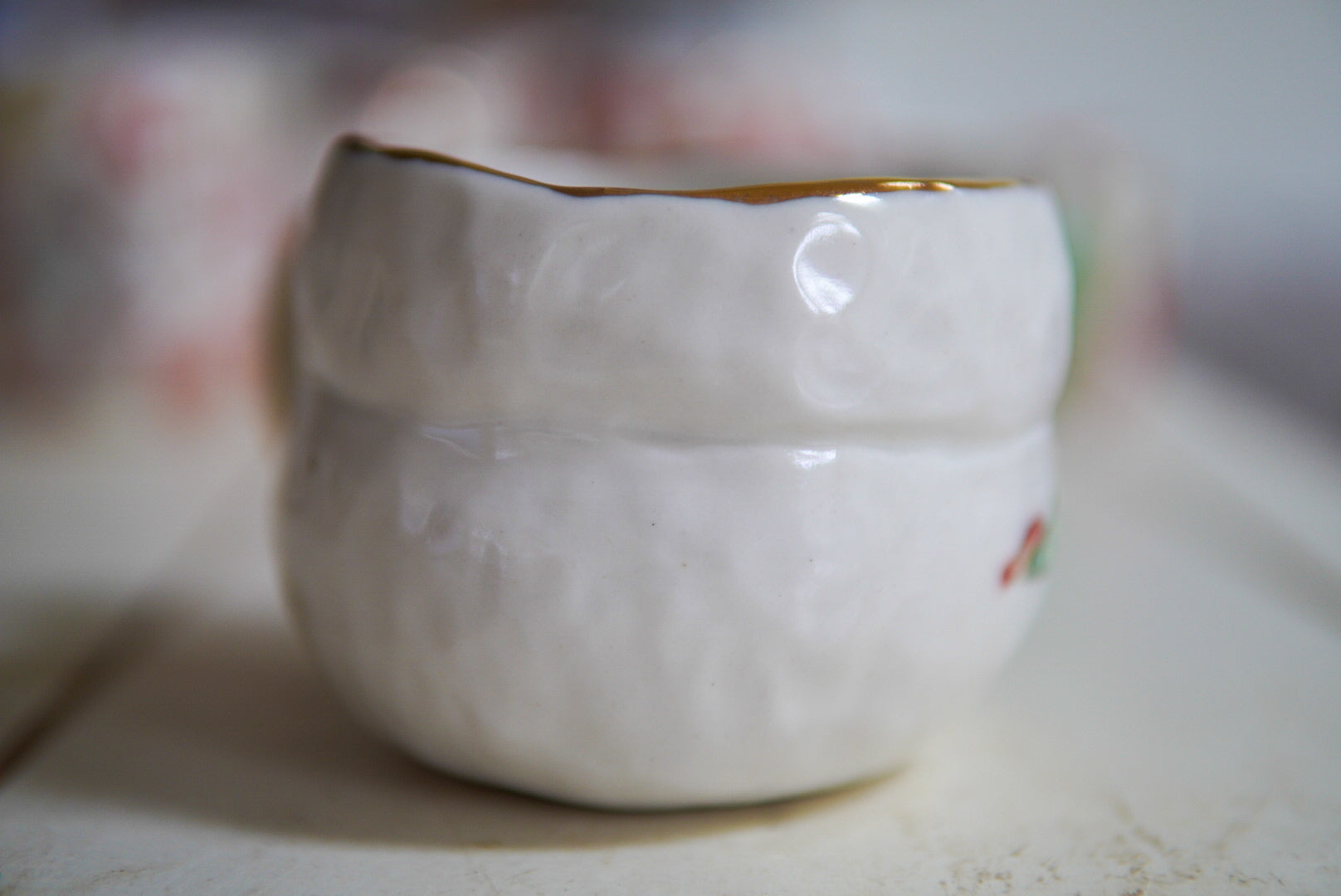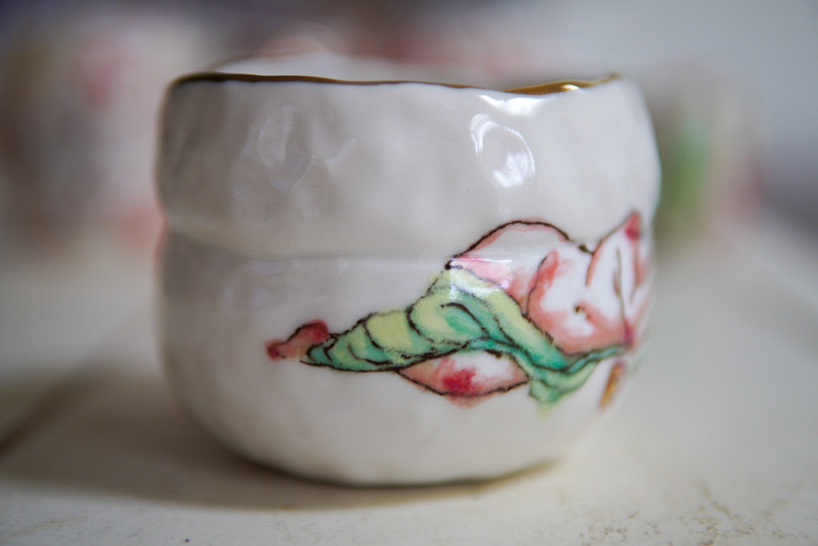 • Porcelain, underglaze, 22k gold luster