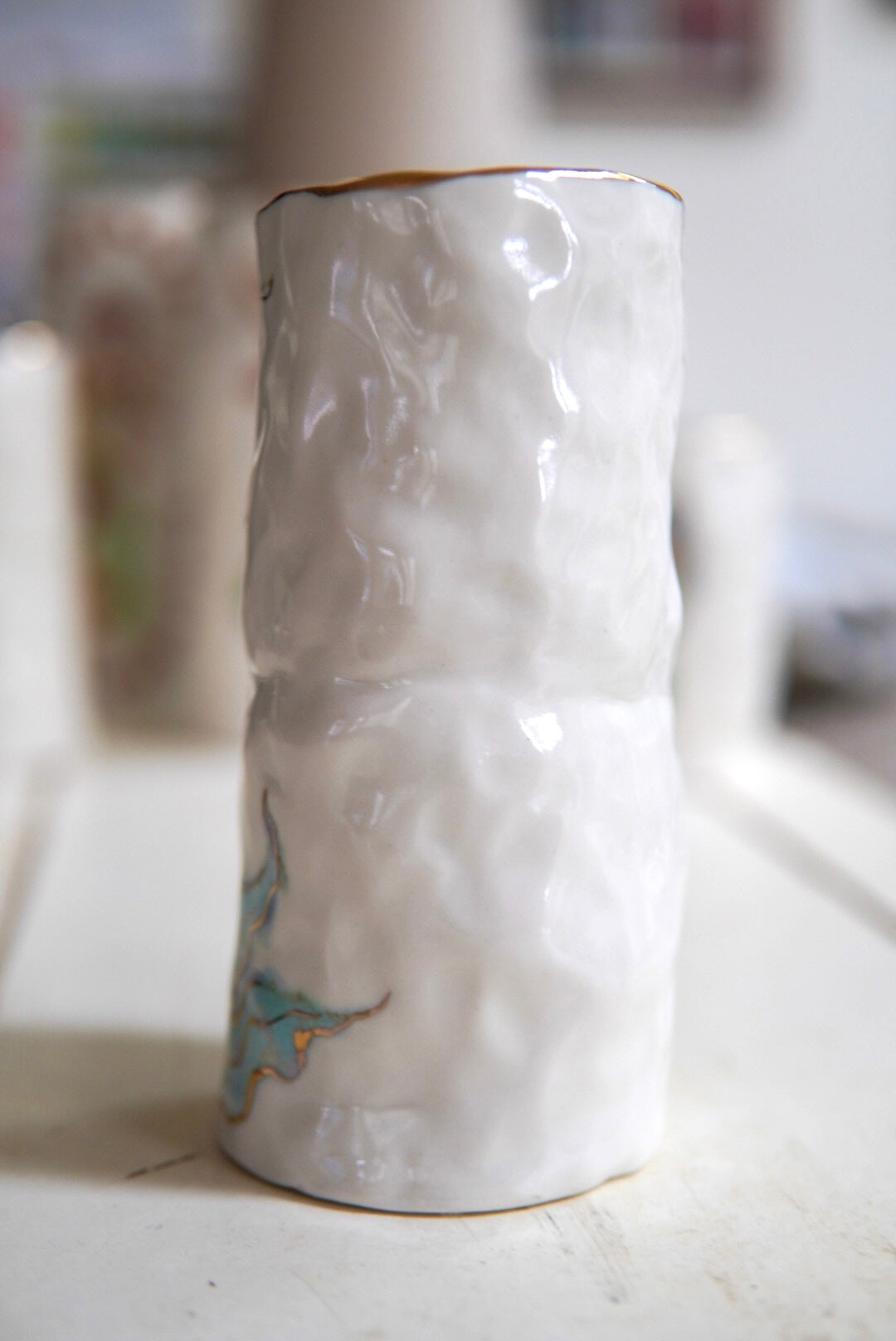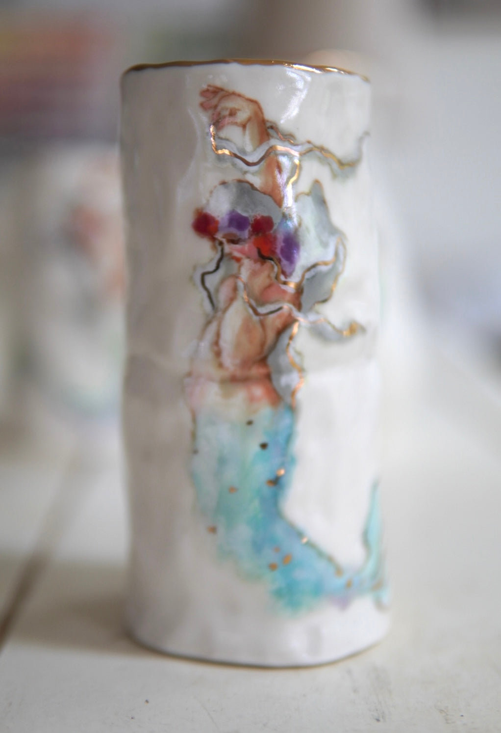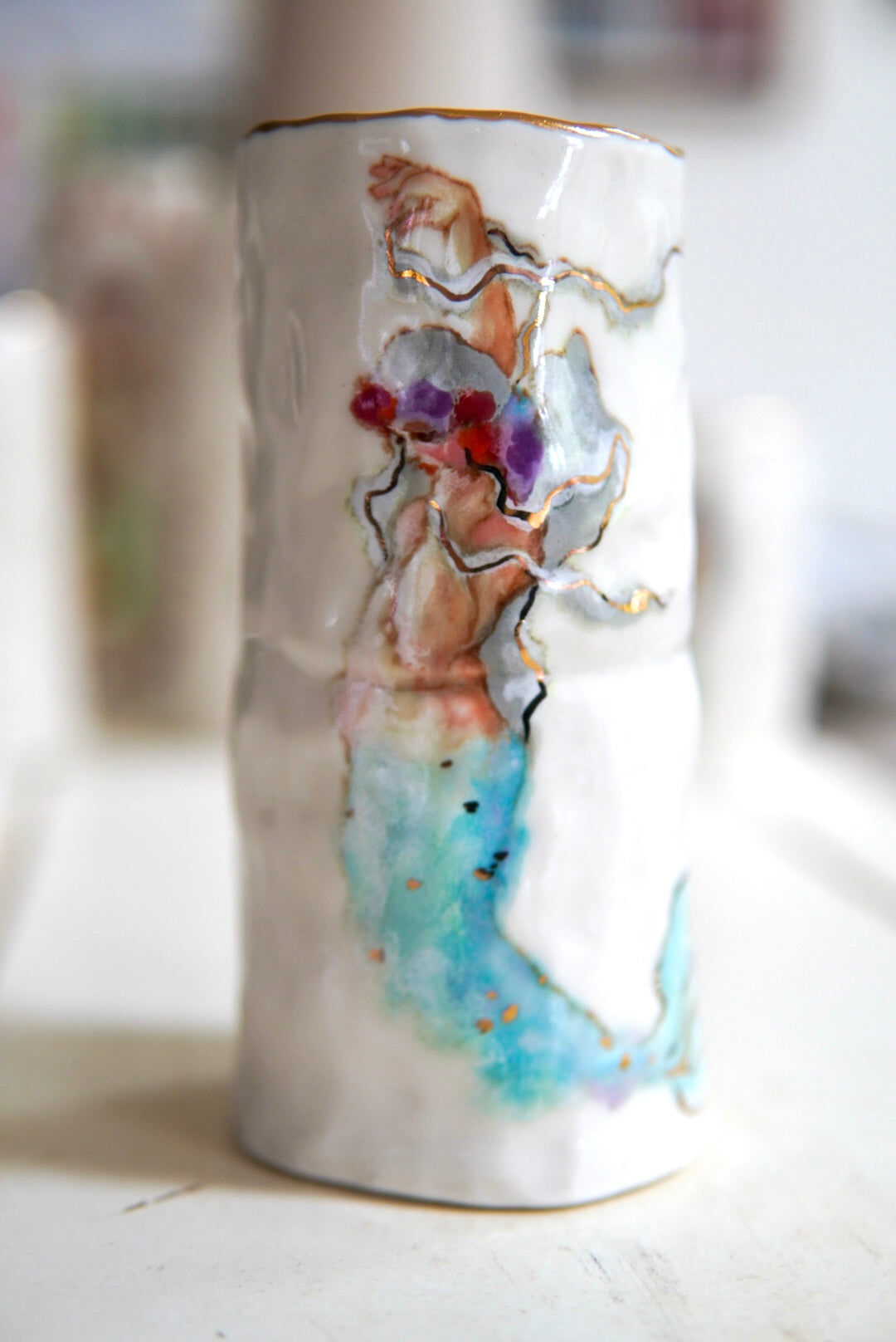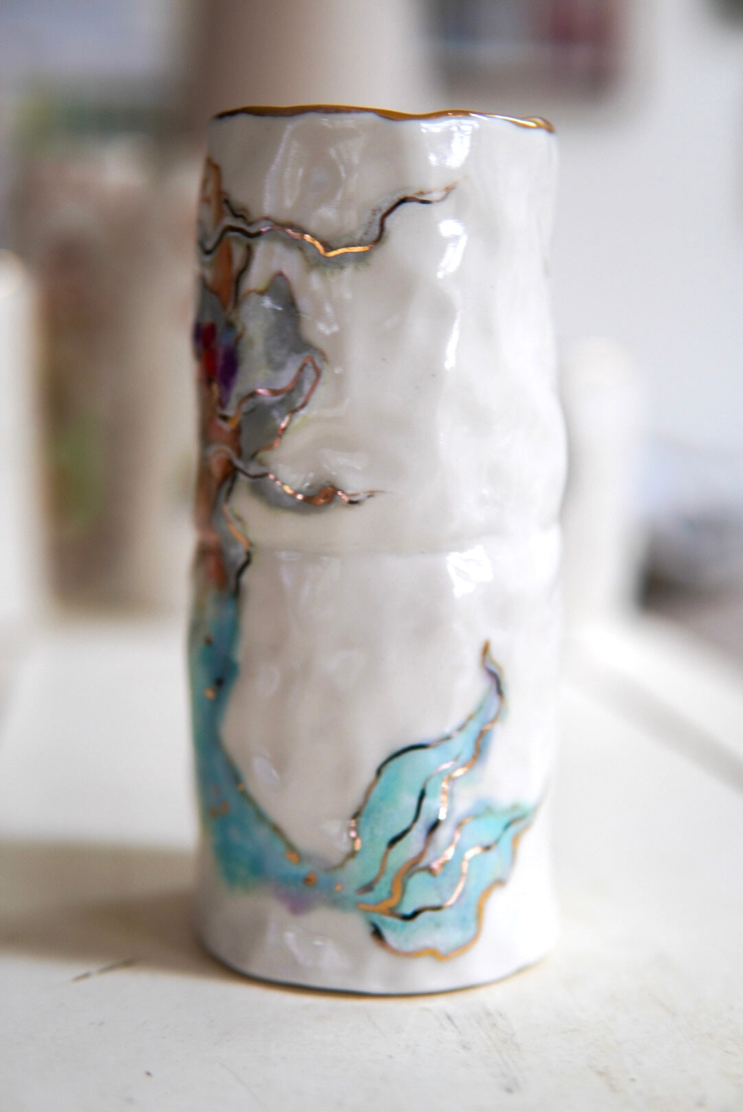 - Porcelain, underglaze, 22k gold luster
