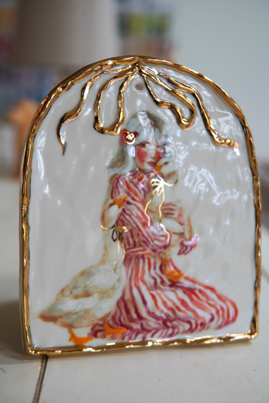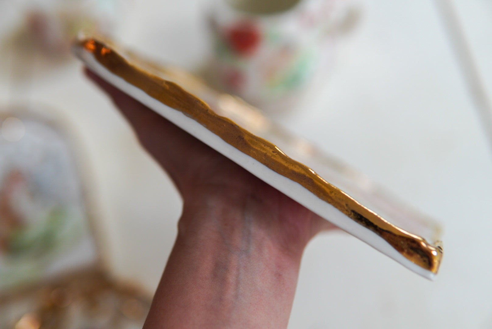 - Porcelain, underglaze, 22k gold luster