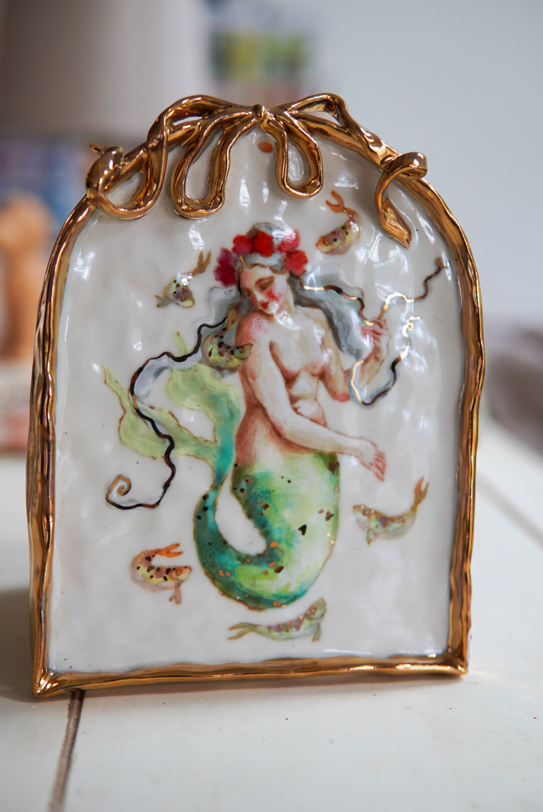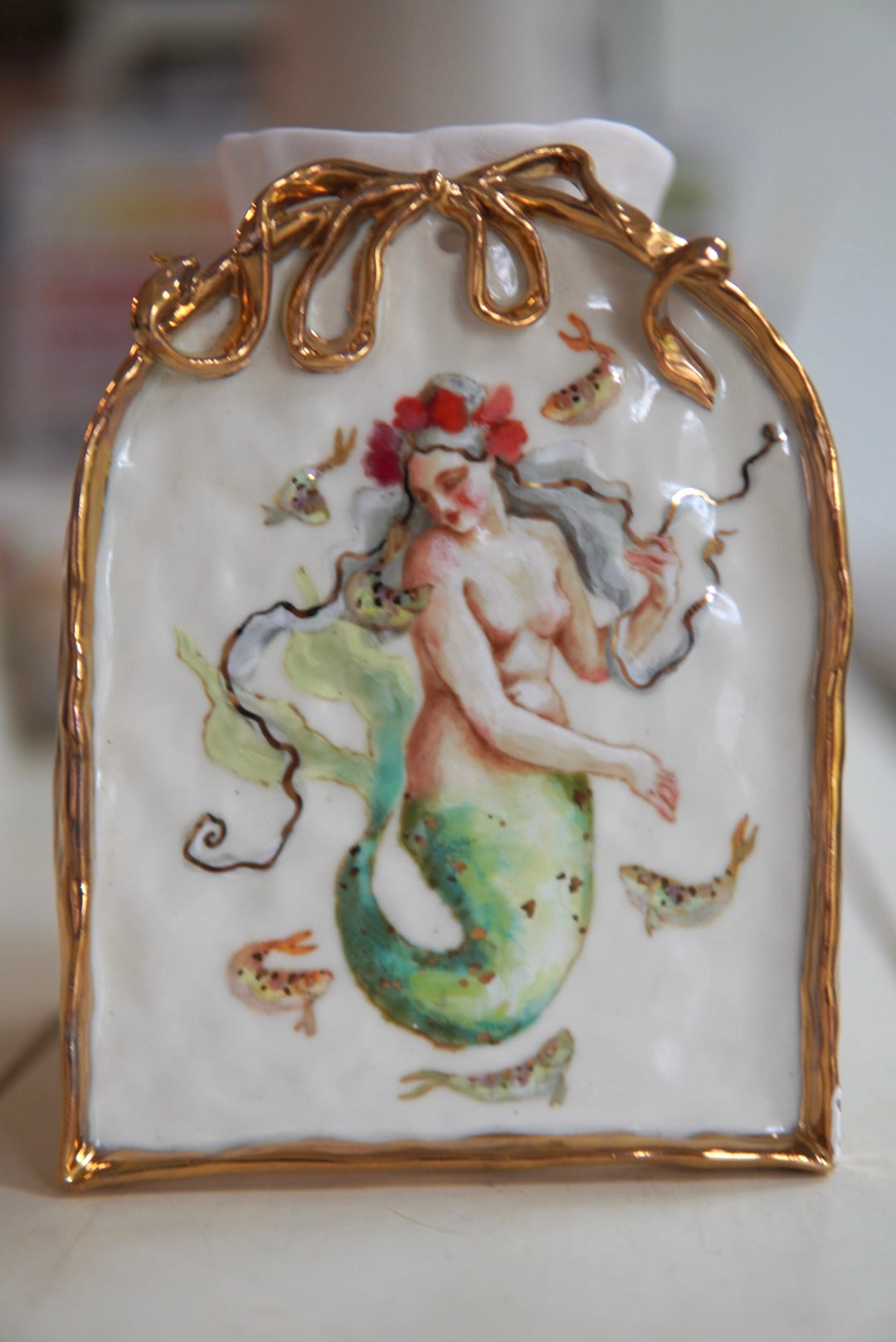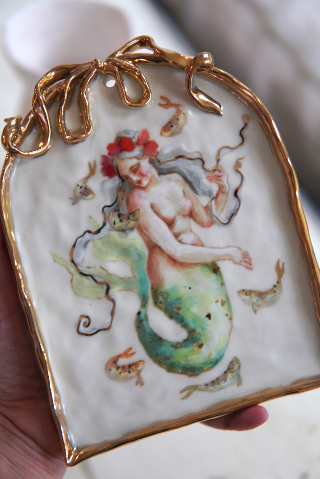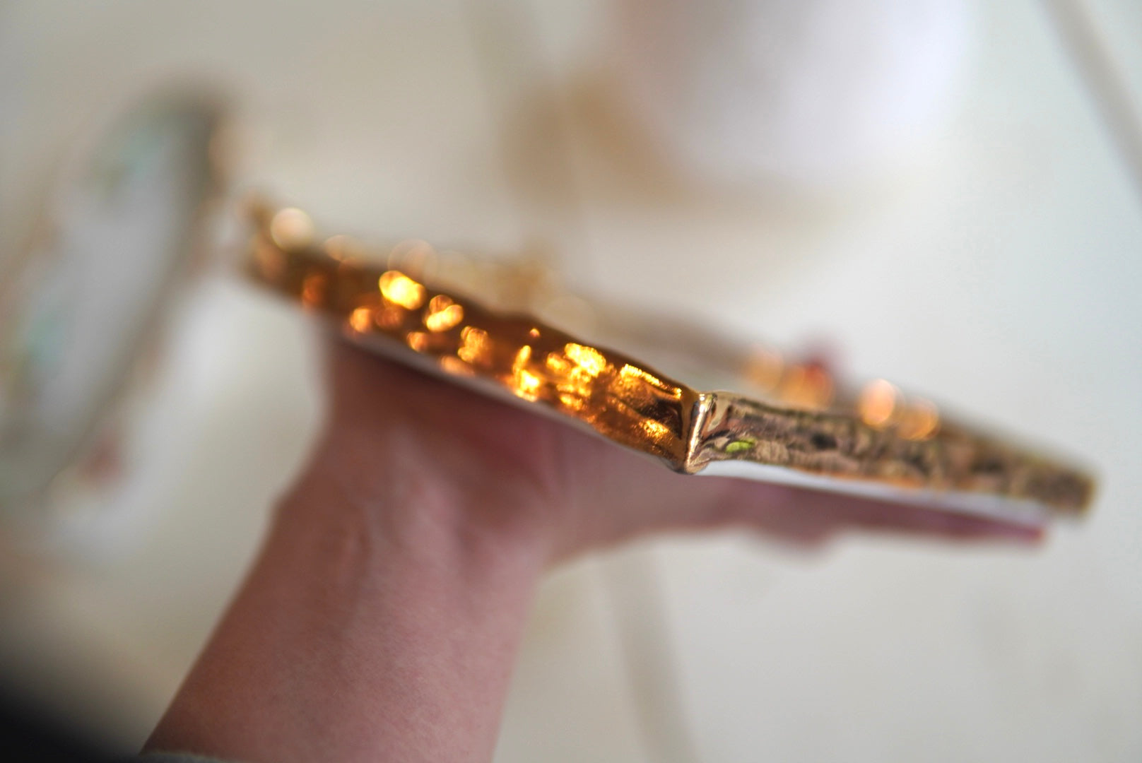 - Porcelain, underglaze, 22k gold luster