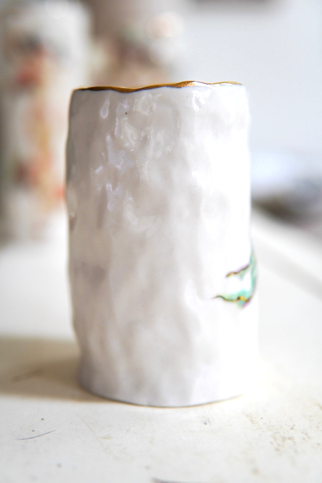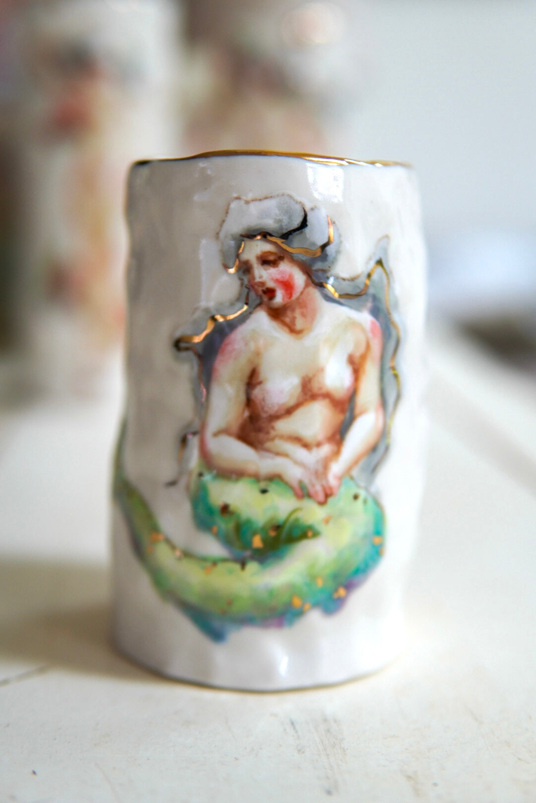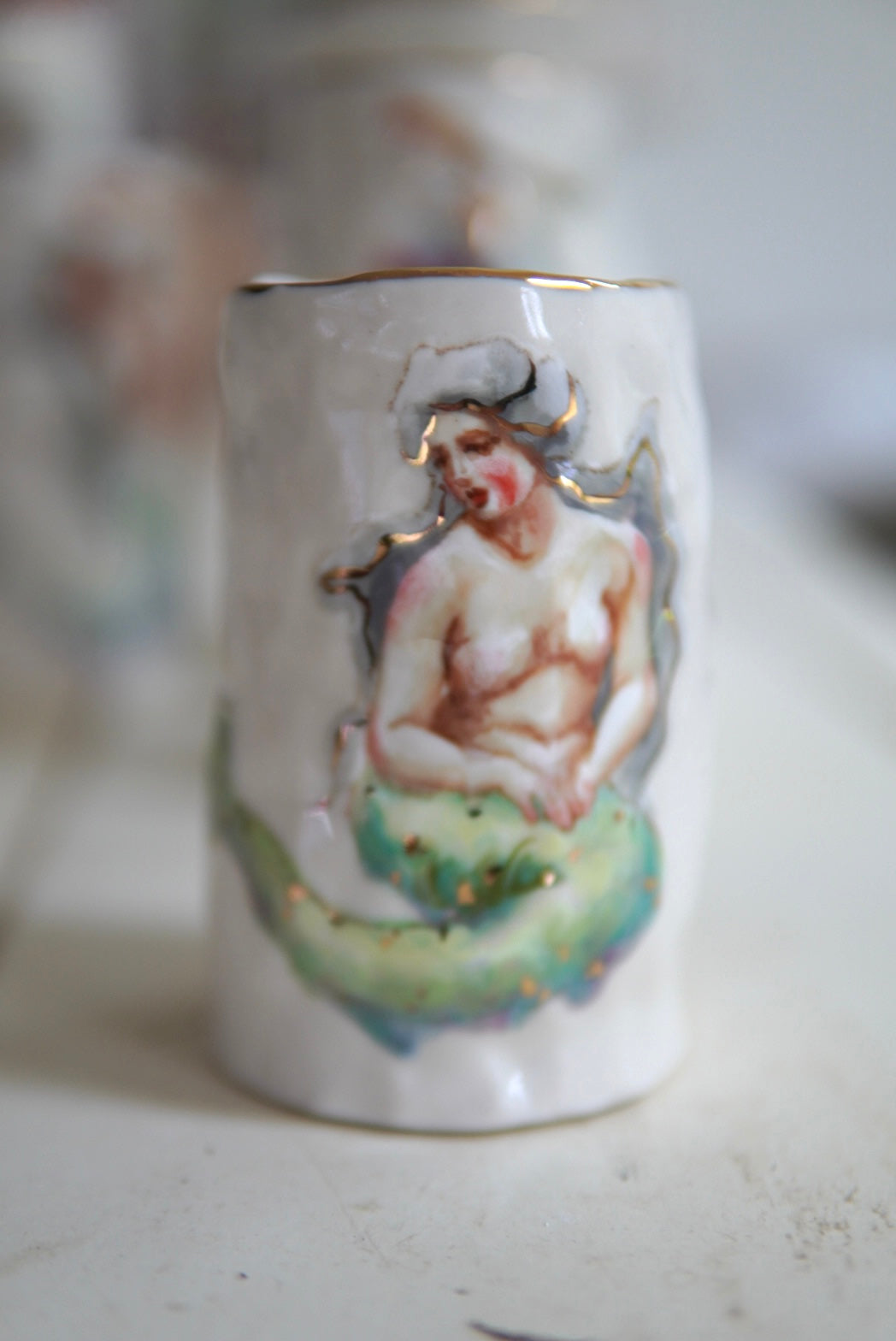 - Porcelain, underglaze, 22k gold luster