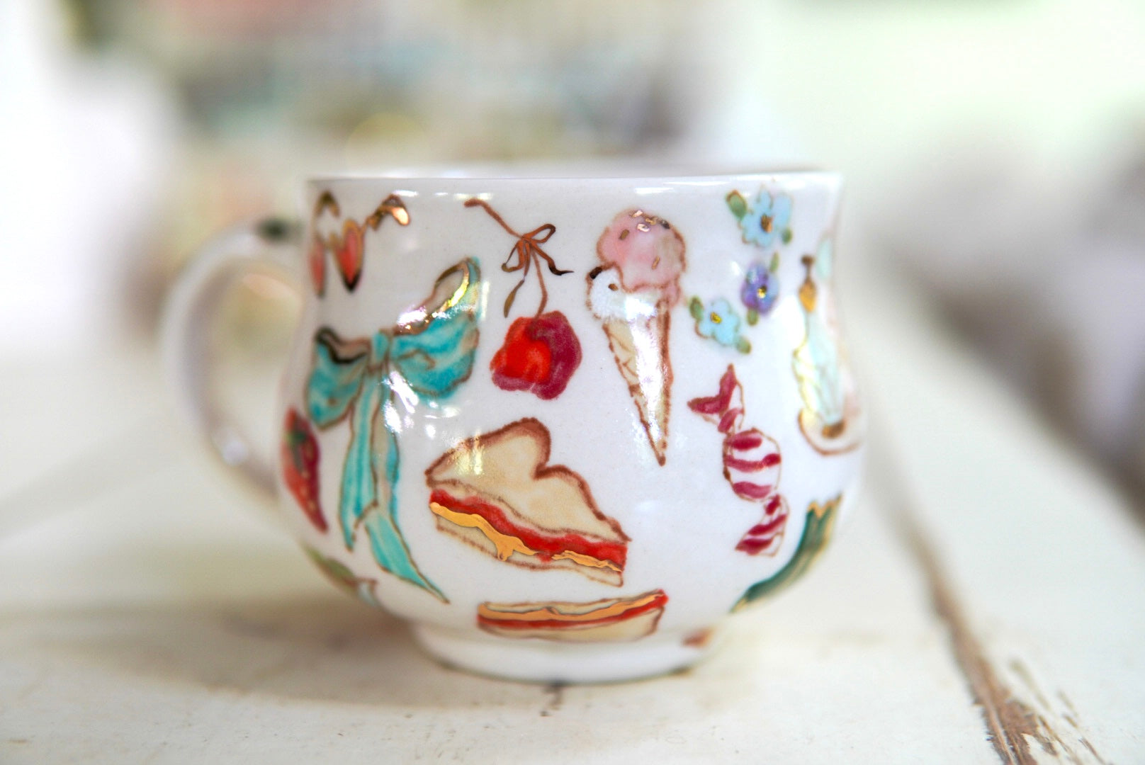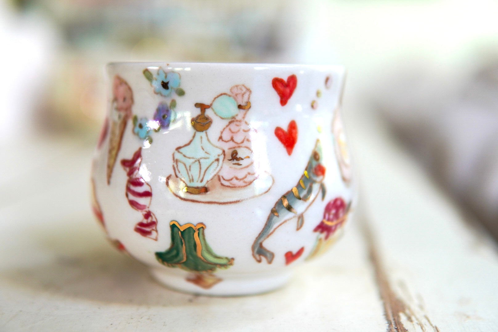 - Stoneware, underglaze, 22k gold luster