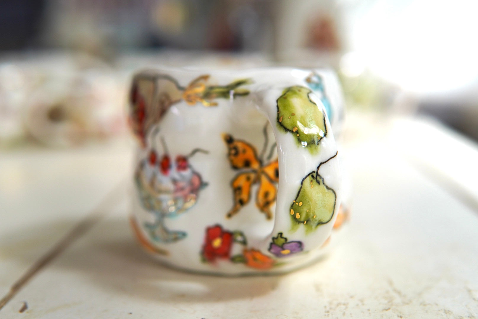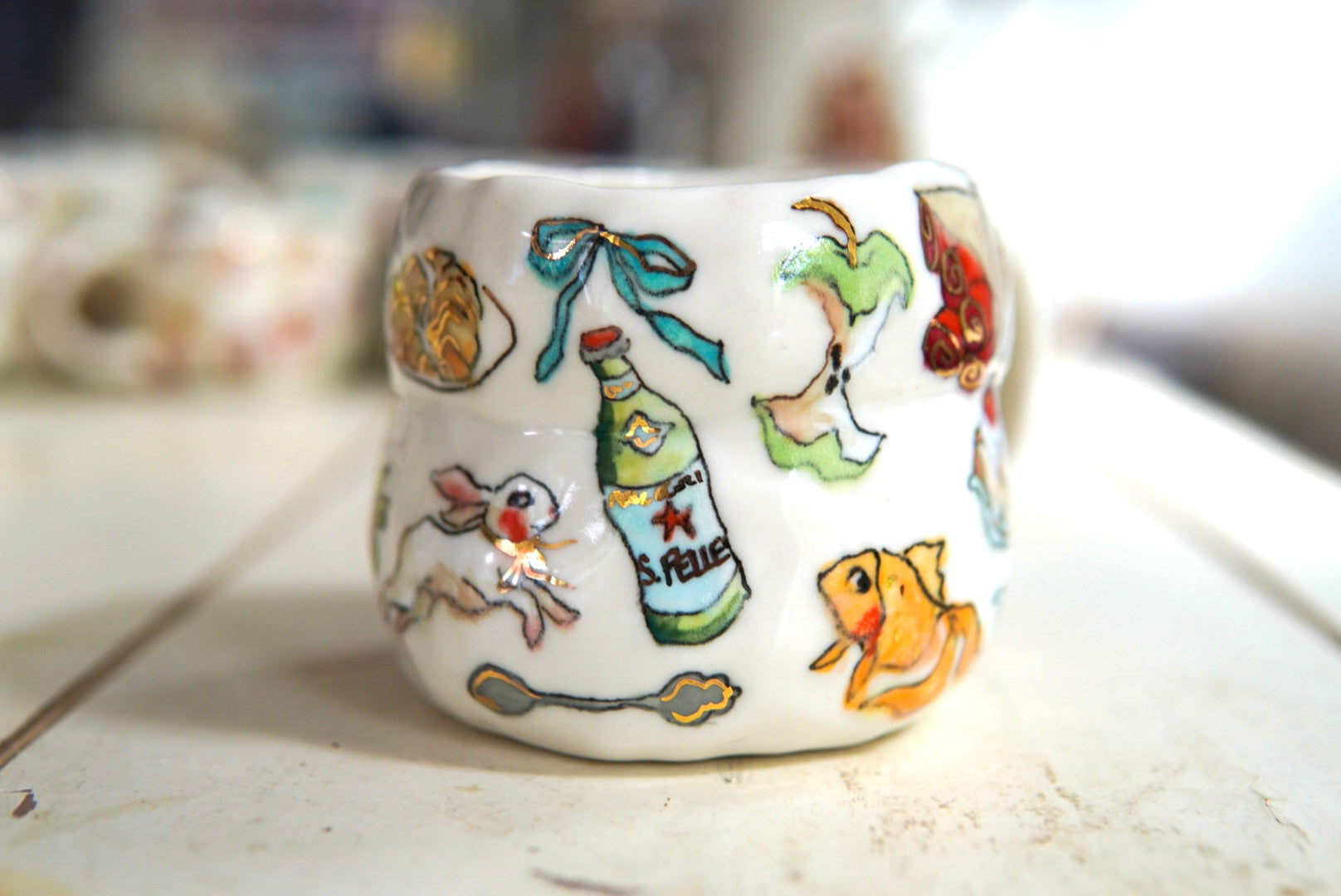 - Porcelain, underglaze, 22k gold luster