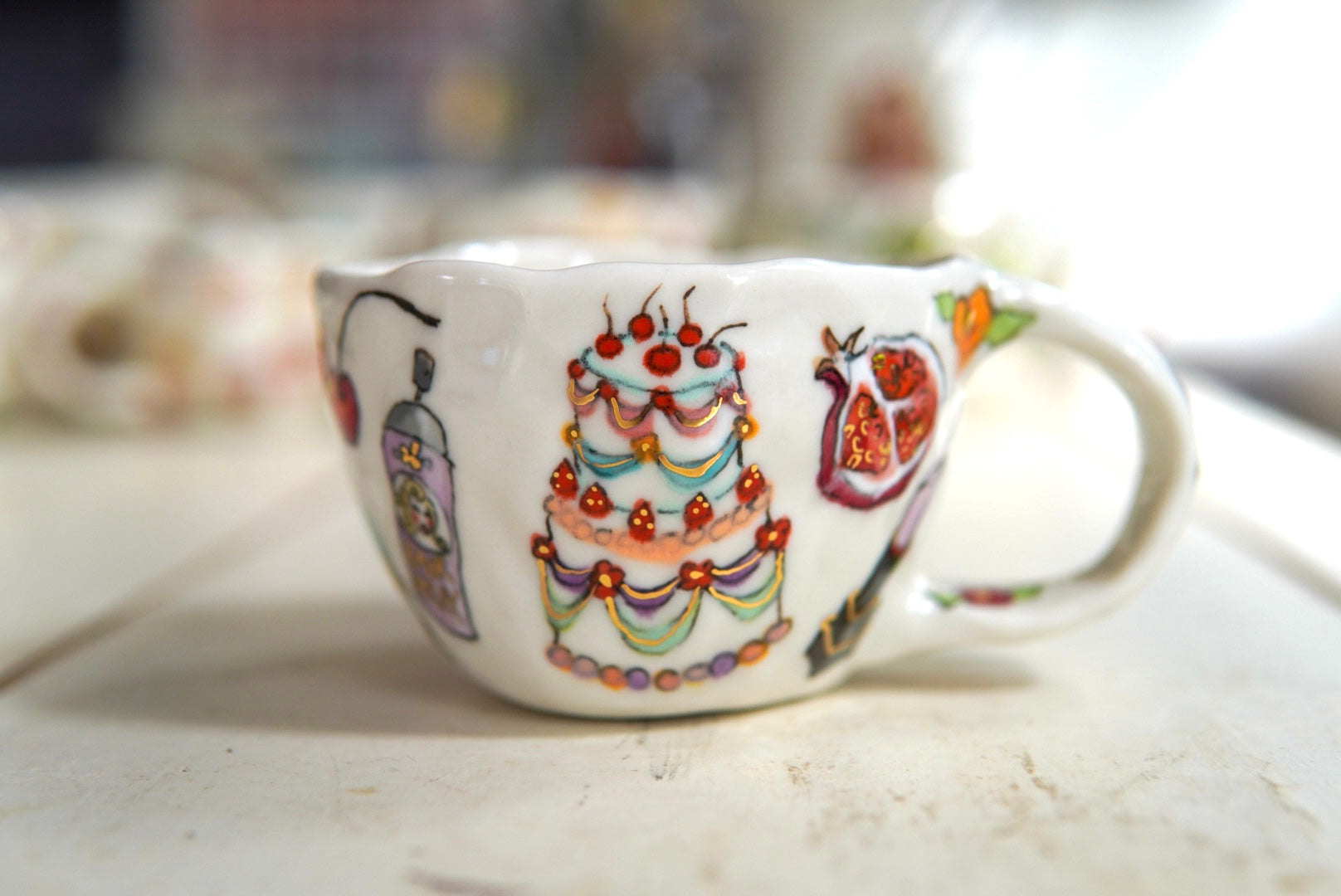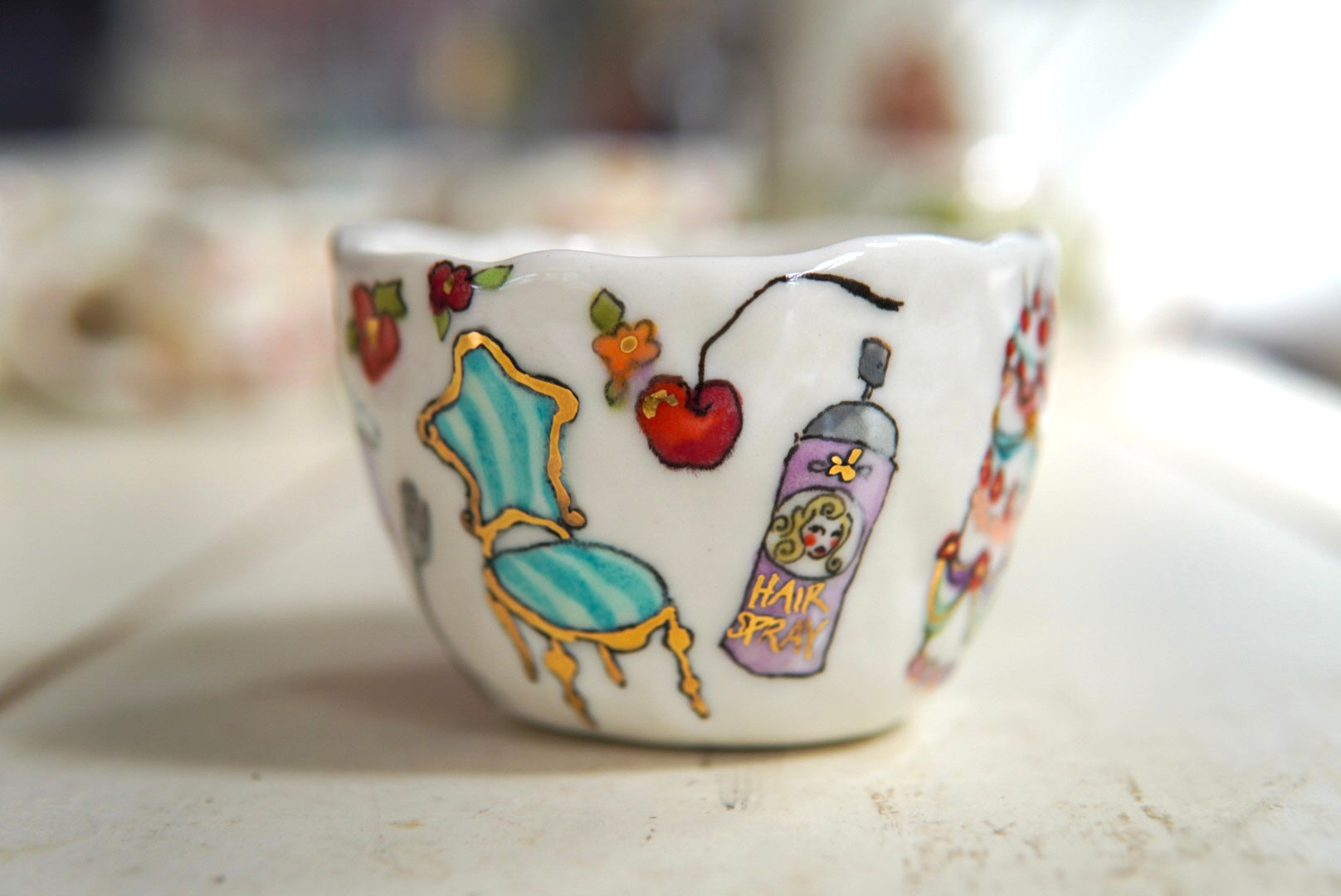 • Porcelain, underglaze, 22k gold luster