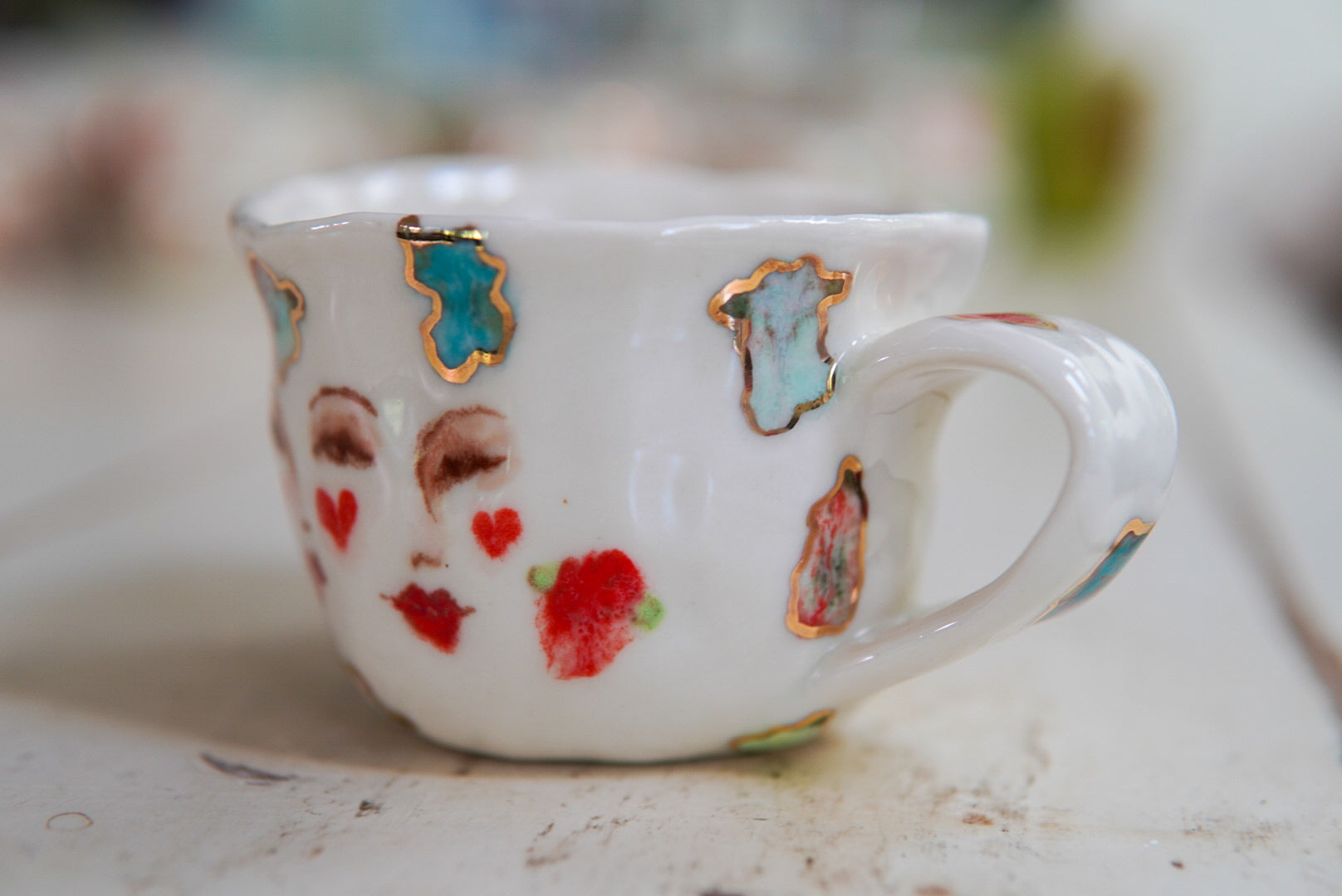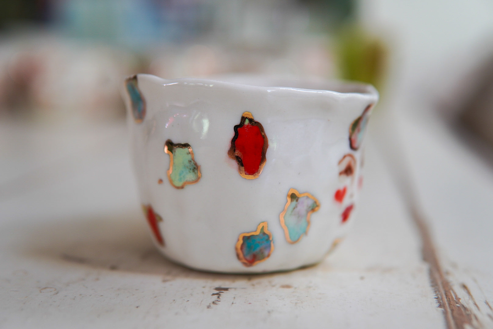 - Porcelain, underglaze, 22k gold luster