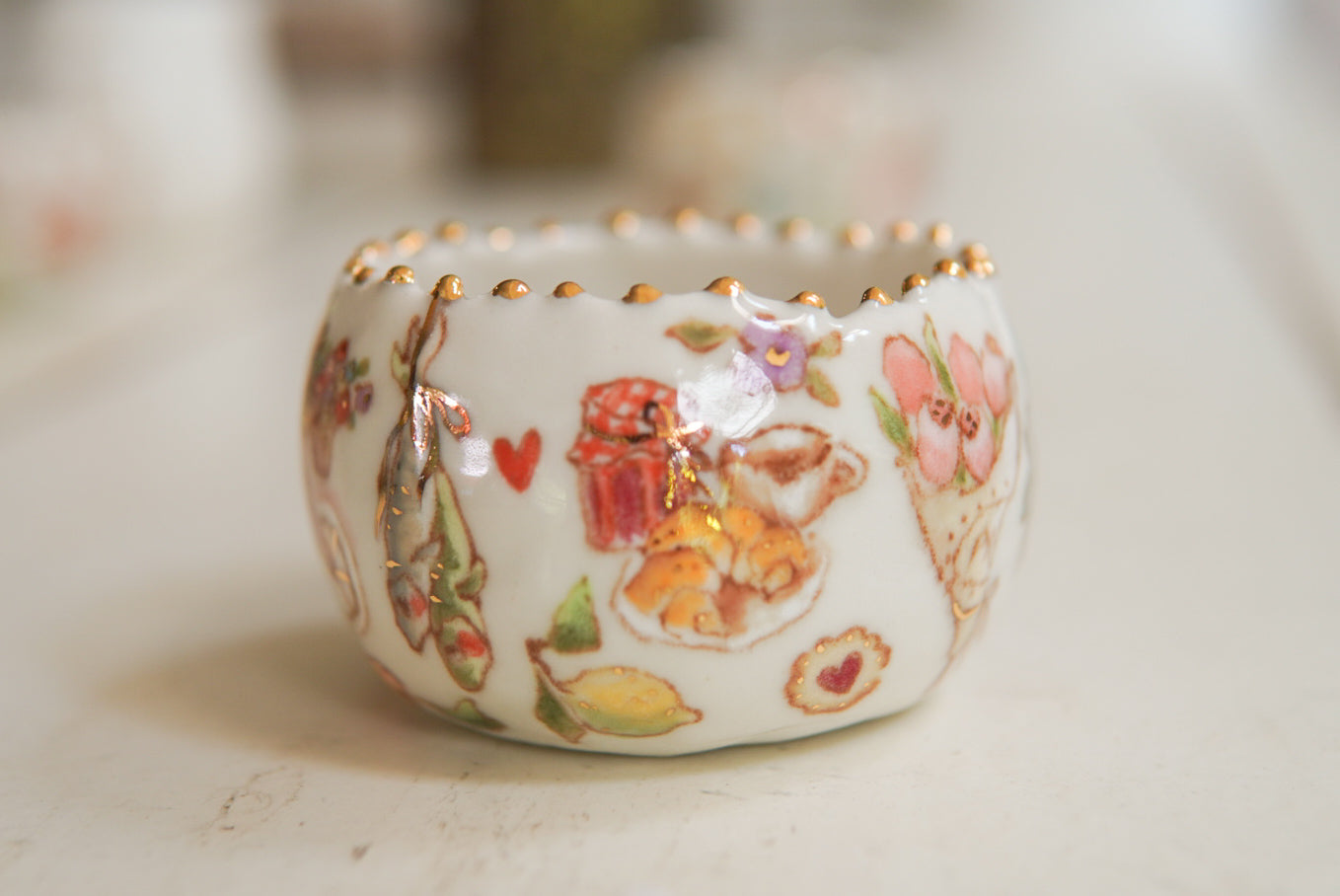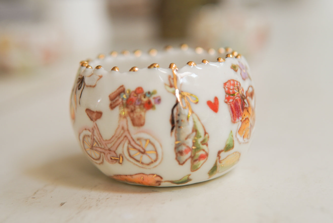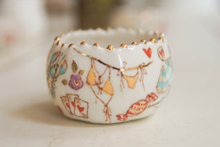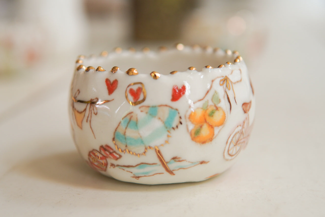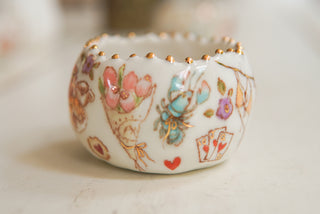 - Porcelain, underglaze, 22k gold luster