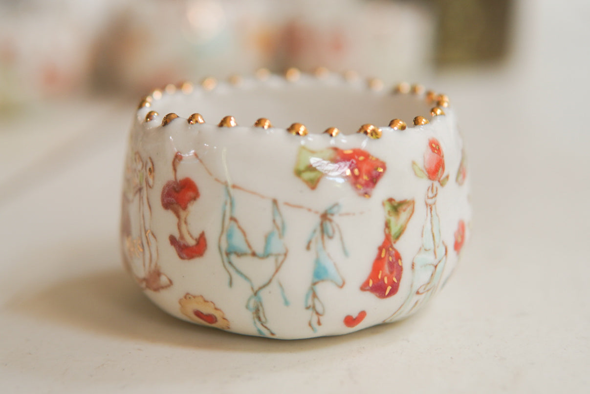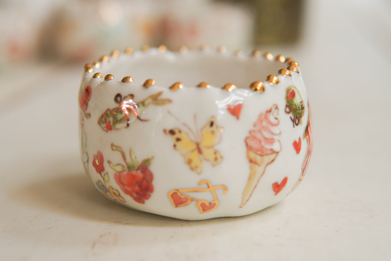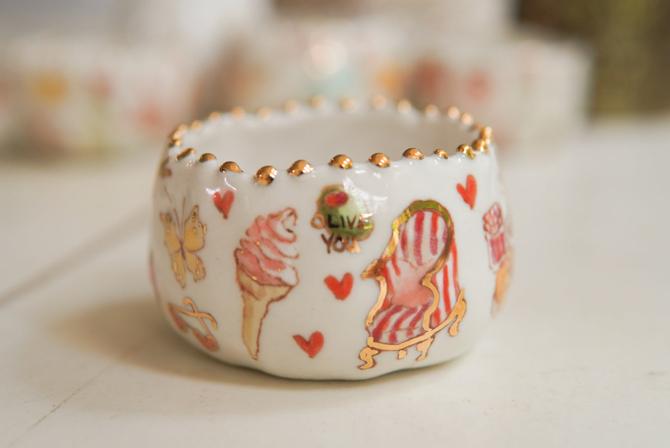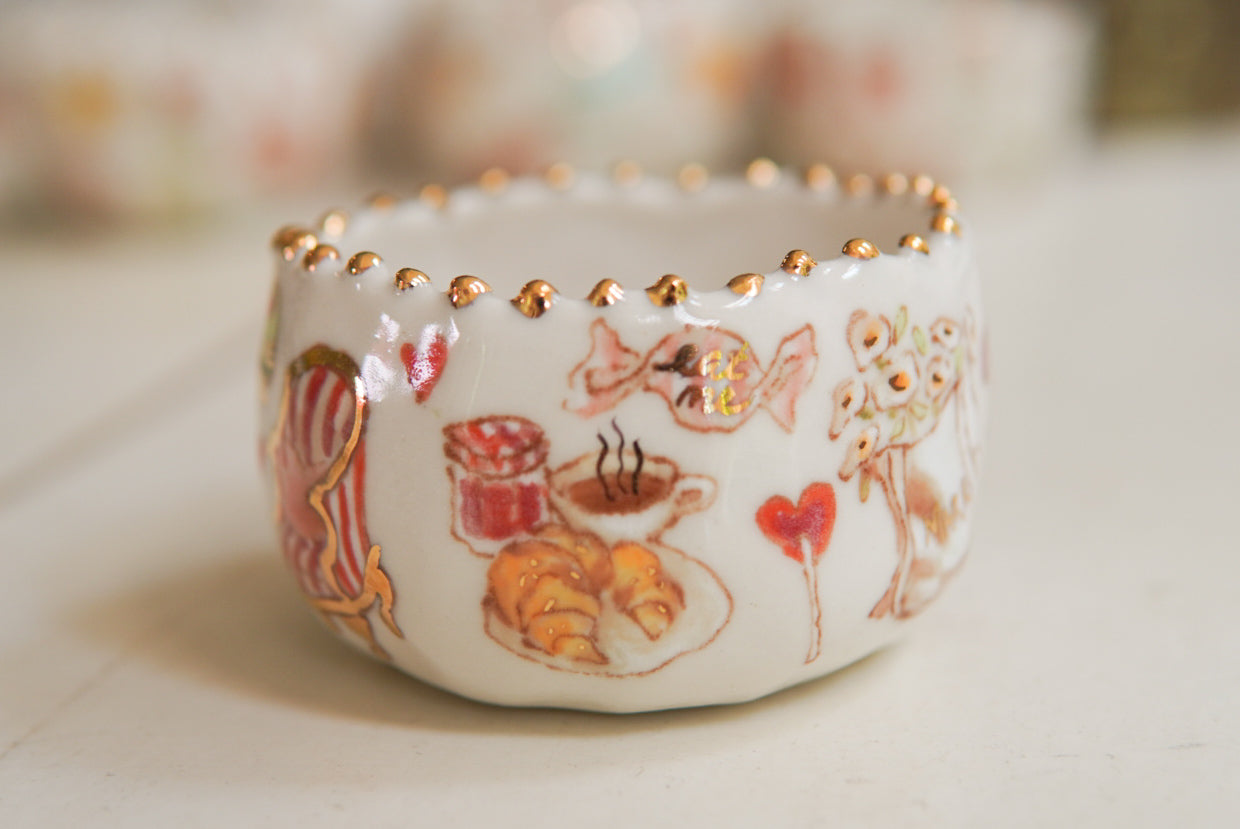 - Porcelain, underglaze, 22k gold luster
