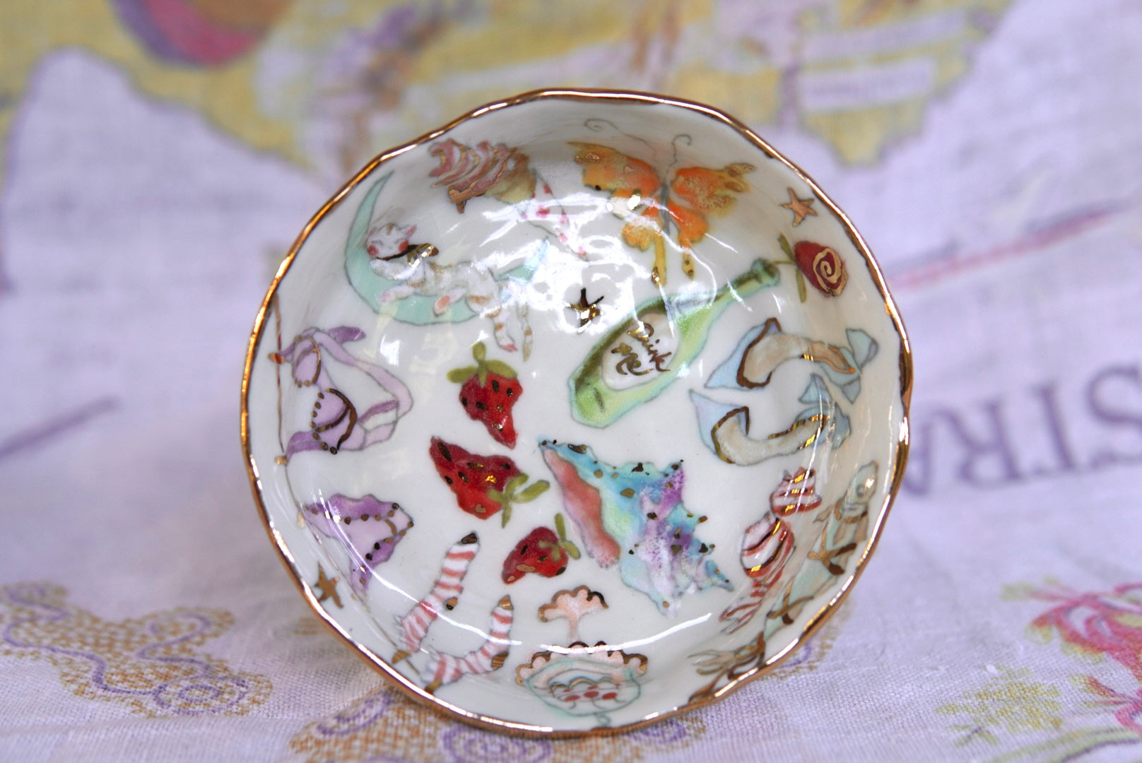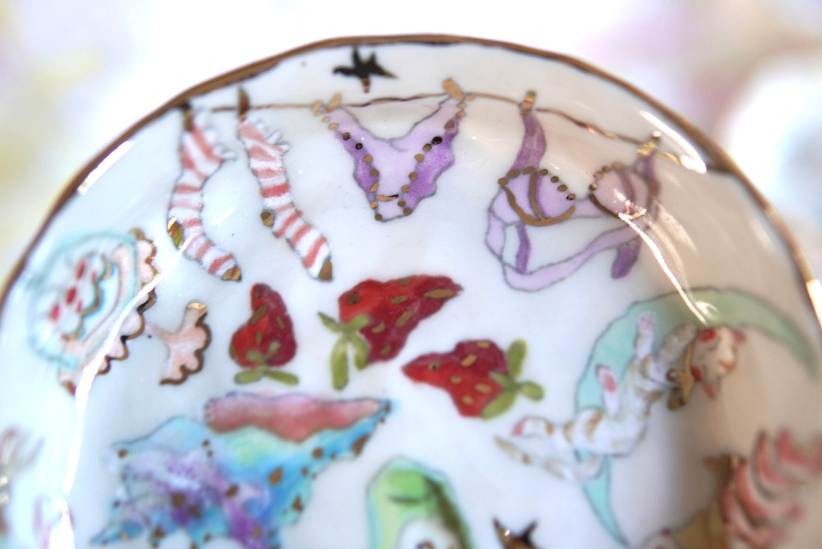 - Porcelain, underglaze, 22k gold luster